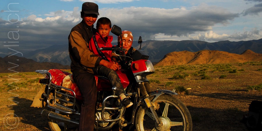 Tant de décors, tant d'émotions, tant d'impressions, tant de ressentis, nous roulons beaucoup. Nous roulons dans des paysages qui ne cessent de changer. Nous passons d'un monde à l'autre dans le gigantesque territoire de l'Empire du Milieu. Nous passons de la densité humaine d'un univers de béton au milieu de métropoles de plus de 6 millions d'habitants, au puissant silence des déserts de sable et de terre, nous passons des champs de rizières infiniment verts accueillis par le regard songeur des buffles, aux vastes étendues arides de pierres blanches à plus de 3'000m d'altitude, nous passons des paysages d'une infini platitude aux sommets dominants dans l'air éthéré de la haute altitude, nous passons dans le monde des yaks caressant les 4'000m au territoire des chameaux entouré d'un canyon de dunes de sables aux milles soleils, nous parcourons les paysages multicolores des champs en terrasse illuminés par l'esprit joueur des ânes puis pénétrons dans l'univers tibétain, sur ces éternels plateaux où les drapeaux de prières flottent au vent.