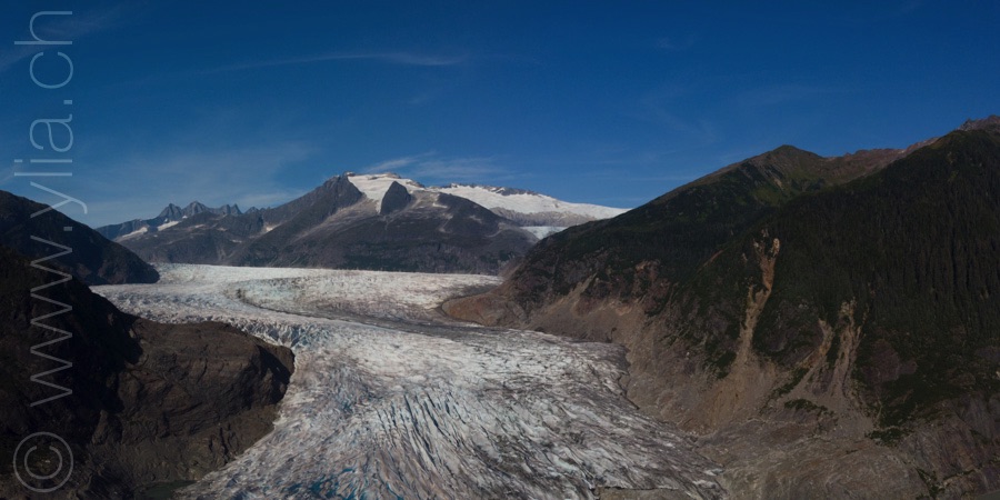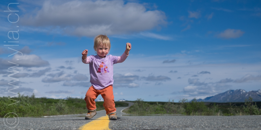 Nous ne savions pas quel chemin prendre, bien sûr nous allions rejoindre Jessie, Pat et Jody. Les larmes aux yeux de les retrouver et de faire vibrer cette puissante amitié. Pourtant cette terre nous a emportés plus loin que nous avions imaginé. Les montagnes enneigées et les glaciers plongent dans l'océan, dans des fjords majestueux. Les paysages portent cette teinte métallique caractéristique de l'Alaska. Nous passons le col Thompson sous un ciel radieux pour entrer dans l'intérieur des terres et rejoindre la Denali Highway, une piste sur 200 km qui traverse les somptueux espaces sauvages, pour rallier en ligne de mire la plus haute montagne de l’Amérique du Nord, Denali. Tout est vaste, majestueux, intense. Nous sommes dans des régions reculées et sauvages. Nous devons ainsi rouler pour rejoindre les points de nourriture qui parfois se trouvent à plus de 6 jours de route.