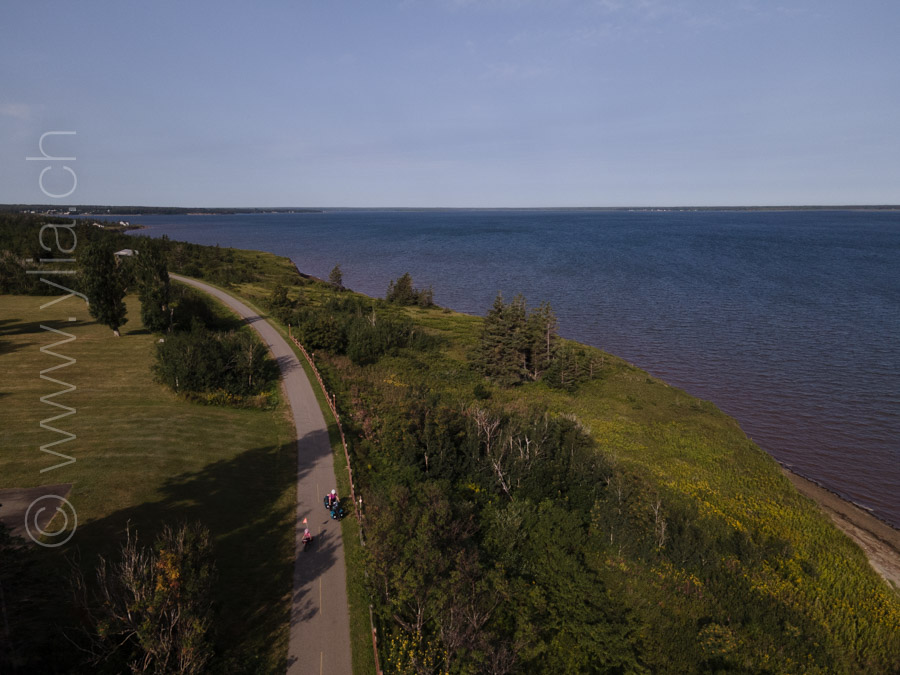 Suivant l’étoile acadienne, nous roulons sur ces pistes cycles neuves face au spectacle saisissant de la péninsule. Plage de sable ou de galet, chaque jour nous plongeons dans l’eau et jouons dans les vagues. Nous rejoignons la dernière île, l’île de Miscou, passant de pont en pont pour atteindre ce bout du monde. Les phares nous conduisent le long du littoral et à saisir l’essence acadienne, une phénoménale joie de vivre.