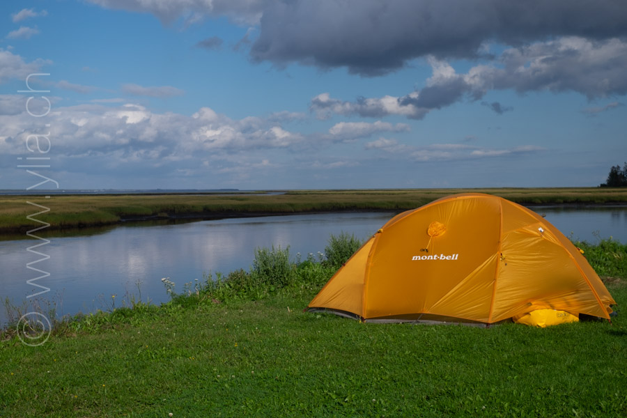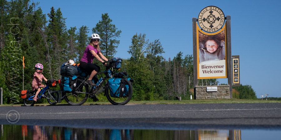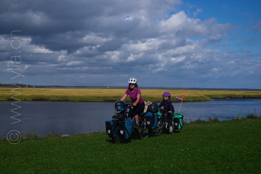 Nous découvrons la vélo route de la péninsule Acadienne. C’est ici que nous fêtons nos 80’000 km sur les routes du monde. Chiffre symbolique de cette vie de nomade. Pour Nayla, c’est déjà 43’000 km. Fibie est nomade depuis 18’000 km surtout au cœur des recoins sauvages de la planète. Ici, elle est euphorique parce qu’elle peut enfin faire du vélo toute seule à la découverte de cette Terre encerclée par la mer. D’un côté, les eaux chaudes de la Baie-des-Chaleurs et de l’autre le golfe Saint-Laurent et sa vie marine exceptionnelle.