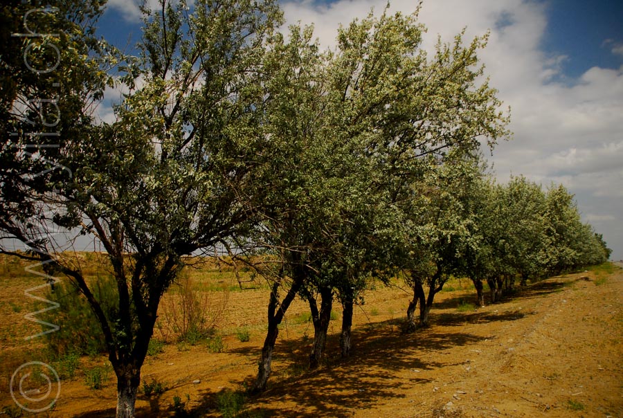 Form everlasting arid land we crossed for miles, we just entered a universe of green surroundings, of delightful smells of spring flowers and of the melody of the crickets songs. It was a jubilant life energy that vibrated our body, soul and heart. But if these landscapes were just a relief for us, these emerald trees and crops had an expensive price. They participated in one of the major ecological disasters, the disappearance of the Aral Sea. The Russian had built a canal that would bring water across the Karakoum desert over 1’100 kilometres in order to intensify the cotton production. Overusing the water of the Aral Sea and provoking the damage of mono-agriculture.