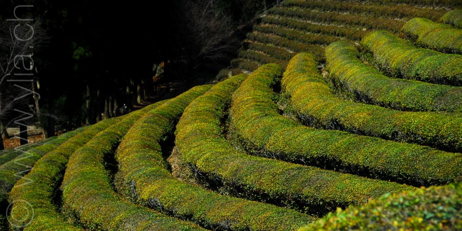 A land of myriads of hills, where the green tea plantations pictures their curving slopes by its dancing lines. The green tint of the tealeaves also illustrated the Korean universe; a large scale of delightful green flourishing on the land, from the tea trees, to the rice sprouts, from the century old pines to the flexible bamboos, a luxurious nature. A green that is also died all the walls of the Zen Buddhist temples. Temples build in traditional architecture isolated in the middle of cliffs. Temples linked to a powerful force of unity, places vibrating outside of the time scale in harmony with the natural world. There, a mystifying view on the horizon revealed further and further the pastel shade of the mountainous landscape.