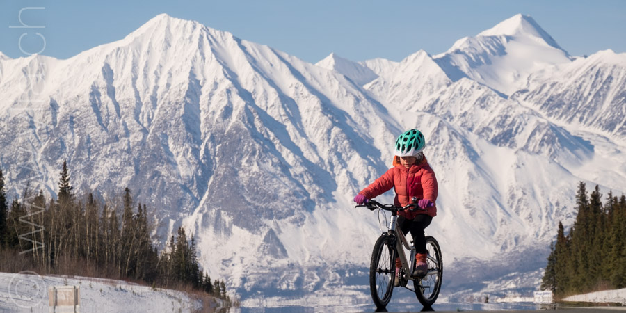 The reality of this land is mostly its hostility. First of all, there is the darkness of those winter days that shrink at a glance. The night is endless and the sun will not even rise above the mountains. Temperatures are also extreme, and that's the difficulty with the children. Everything if fine and then nothing is fine anymore, the cold has already set in their bodies. It's too late. We have to make a fire or go to a heated place. But Fibie is already immersed in adventure. At -40°C, she goes for a bike ride in spite of the polar temperatures. Our passage in the Yukon has also allowed her to learn English, which she now speaks as well as French.
