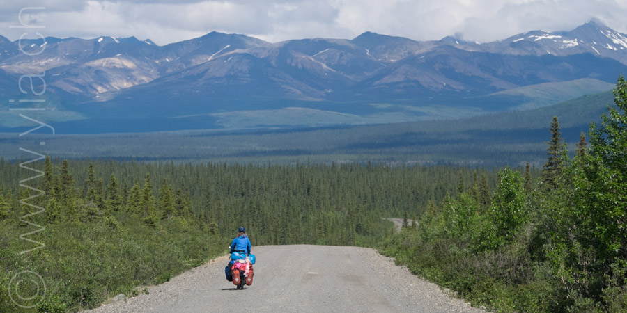 We didn't know which way to go, of course, we were going to meet Jessie, Pat and Jody. Tears in my eyes to see them again and to share this strong friendship. Yet this land has taken us further than we had imagined. Snow-covered mountains and glaciers plunge into the ocean, into majestic fjords.The landscapes bear this metallic hue characteristic of Alaska. We pass Thompson Pass under a bright sky to enter the interior and join the Denali Highway, a 200 km trail that crosses the sumptuous wilderness, to reach the sight of the highest mountain in North America, Denali. Everything is vast, majestic, intense. We are in remote and wilderness areas. We have to cycle to reach food points, which are sometimes more than 6 days away.We are amazed, immersed in the song of this land, in the majesty of a nature that transcends us. Little by little, we feel that we are entering the dance. We feel that we are one with this land, we vibrate in unison. We live in its endless light. The midnight sun now illuminates each of our nights. We are filled with boundless energy, with extraordinary vitality.