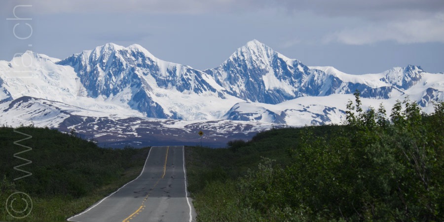 Their presence alone leads us to change our routine. We now have two tents, one for sleeping and one for eating in case of bad weather or as protection against mosquitoes. The latter will prove essential from the very first days. Welcomed by a blue sky along the Cook Inlet facing the Chugach Mountains, the weather is changing rapidly. We are bathed in freezing rain as we cycle beside the snow, the peaks covered in a mist of white veil.
