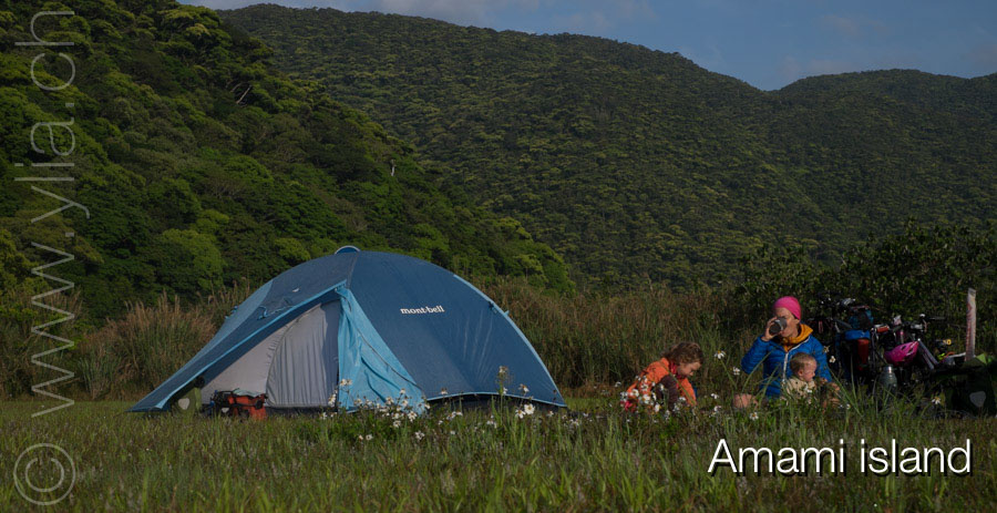The meetings are moving. Nayla is invited in the schools to follow some classes and learns how to plant the rice. She also learns to fish with Zamami San family, who welcomes us with open arms. Besides, they don’t let us go without making an omamori, a protective handmade talisman with shells that we picked up on the beach. These talisman are now on our bikes, protecting us.