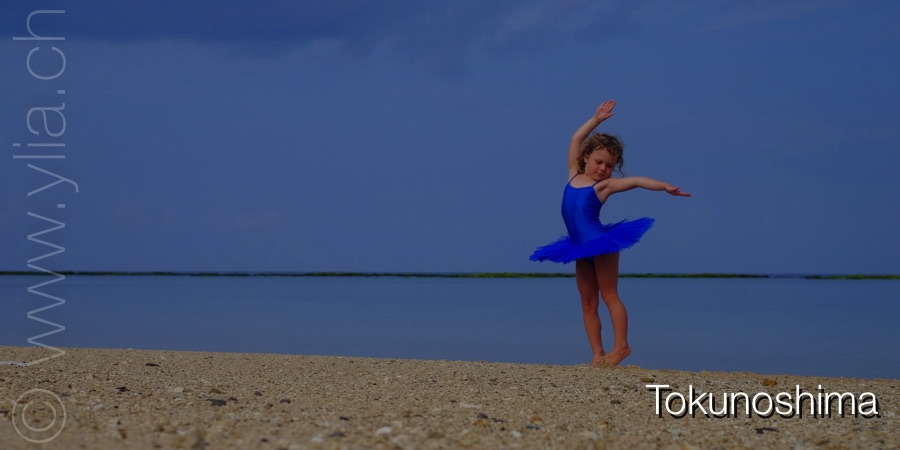 We are going north from island to island. The landscapes are truly amazing. They captivate us. Nature shows its purity. Each one of these islands reveals its face, its panoramas and atmospheres. The colour of the ocean seems to belong to the dream world. The blues are magical, the sand white, the water is so clear. The hills are plunging into the ocean and bright red hibiscus flowers are blooming, symbol of the Okinawa Islands. The spirit of the turtle is with us, Nayla has called them many times and hoped to meet them so much. And magic happened, Nayla could swim with one of them!