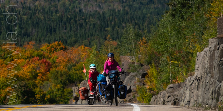 It is one of the mythical roads in Quebec. It passes through the mountains of Lanaudière, and includes steep climbs with slopes of more than 10%. The landscape is absolutely grandiose. The round-shaped mountains are all around us. They are covered with deciduous forests that are in full transformation. They are adorned with their most beautiful colors. These leaves create luminous paintings with bright colors. At the top of the passes, after the intensity of the effort, the earth offers us its most beautiful scenery.