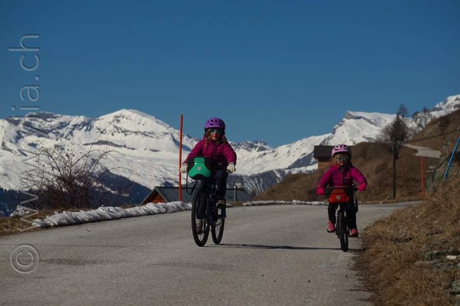 Arriving at the gates of Switzerland, we are enthusiastically welcomed by Thomas Weiss, who created FollowMe, the system that has allowed us to take Nayla and Fibie on the roads of the world for more than 32'000 km. We are at the border with Switzerland. Fibie has never been there before, and Nayla was just 2 years old the last time we went there. It's the first time in more than 11 years that we're back with our bikes. It's a feeling of coming full circle. We came back to the starting point, as if to give even more dimension to this life we have created and the vast wild spaces we have explored. We cross the Basel bridge. The Aare and then the Broye guided us to Ropraz, where we dared to take that first step, that first pedal stroke and that gigantic plunge into the unknown. Claire-Lise, Xavier's mother, was not aware of our arrival in Switzerland. What an excitement for the girls to organize this surprise! A frantic joy agitates them, and yet Fibie is slightly worried. What kind of welcome will she receive in Switzerland, she who knows nothing about this country and who has only met her grandparents? We walk in the door and it's an explosion of emotions!