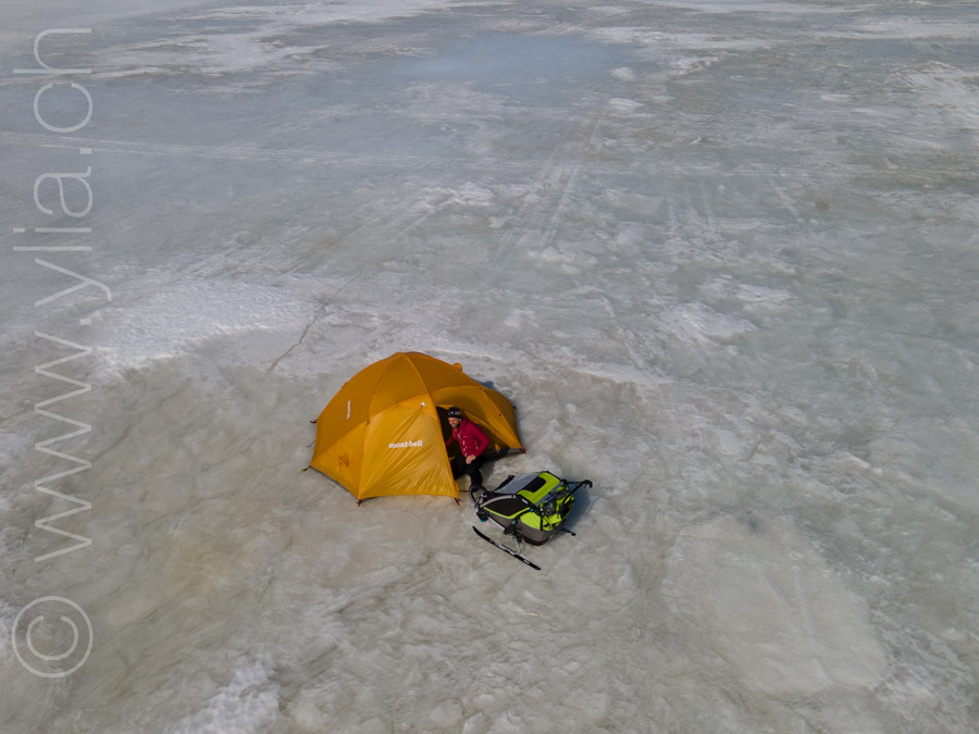 There are no natural barriers on the lake. The wind carves the snow. It can be violent, fierce. In a few minutes, it transforms this white paradise in a void with no visibility. The snow is blown into small crystals that whip our face. These powerful winds and storms also cause temperatures to drop with a wind chill approaching -35°C. In such conditions, the lake can quickly turn into a hostile place.
